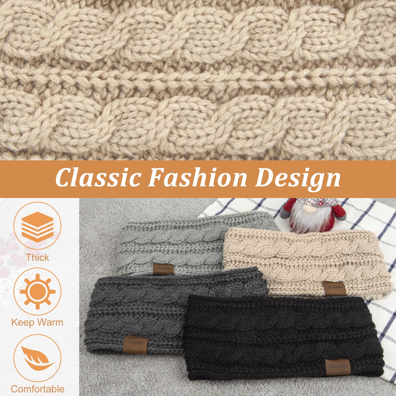 Loritta 4 Pack Womens Winter Headbands Fuzzy Fleece Lined Ear Warmer Cable Knit Thick Warm Crochet Headband Gifts