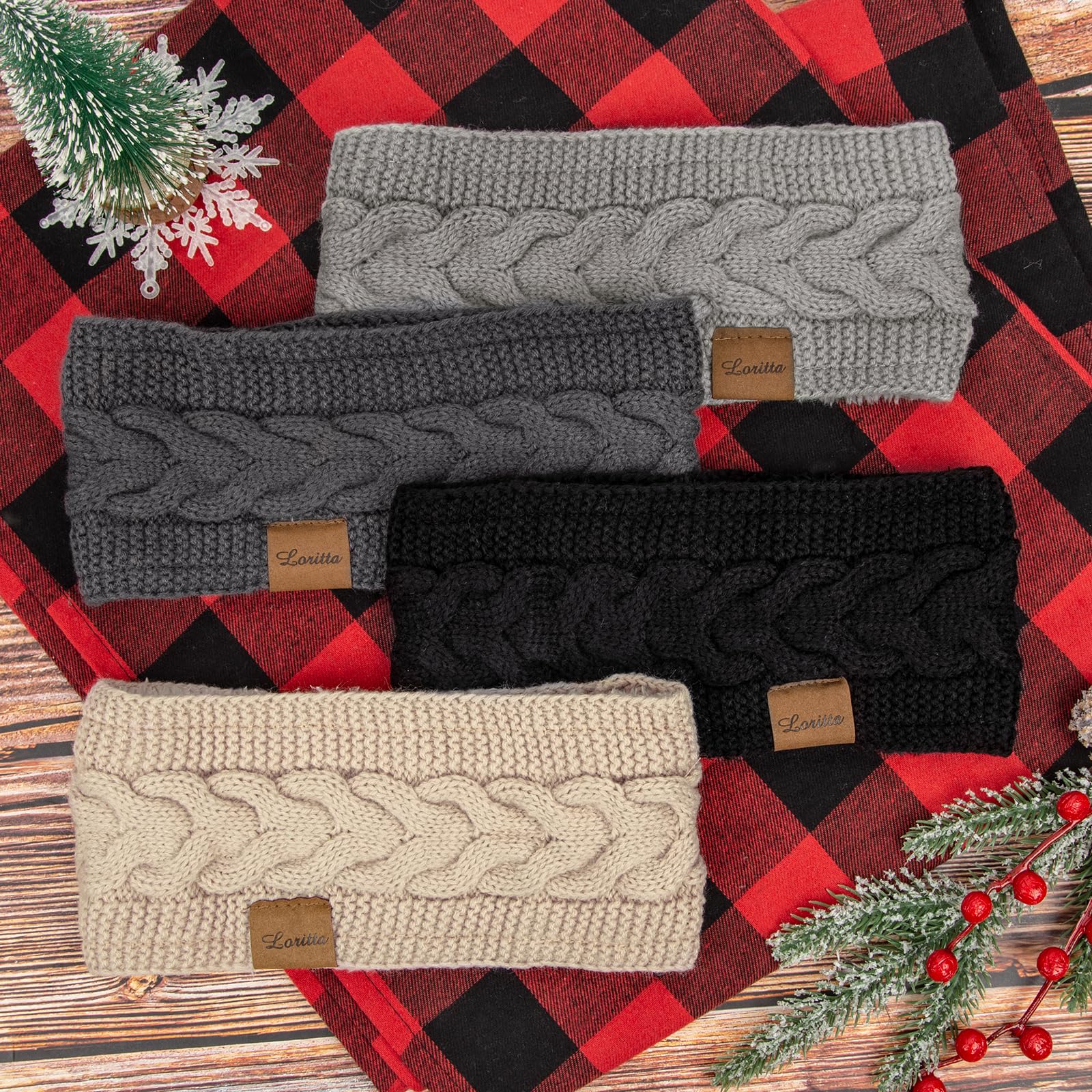 Loritta 4 Pack Womens Winter Headbands Fuzzy Fleece Lined Ear Warmer Cable Knit Thick Warm Crochet Headband Gifts