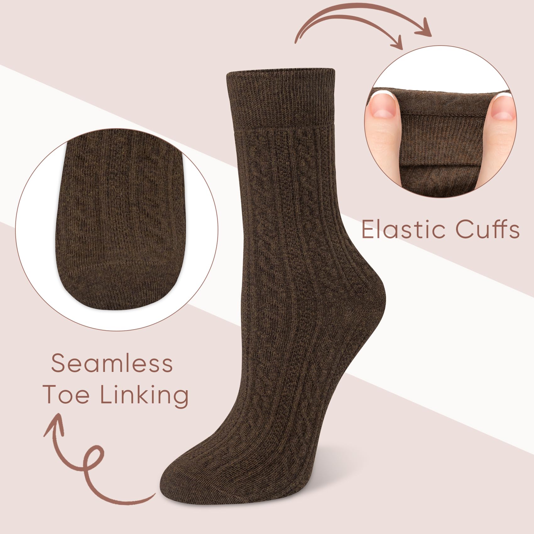- Comfortable Fabric: The womens crew socks are crafted from cotton and spandex; These cozy fabrics have excellent moisture-absorbing and breathability properties, providing you a relaxing experience and keeping your feet warm and dry throughout the day