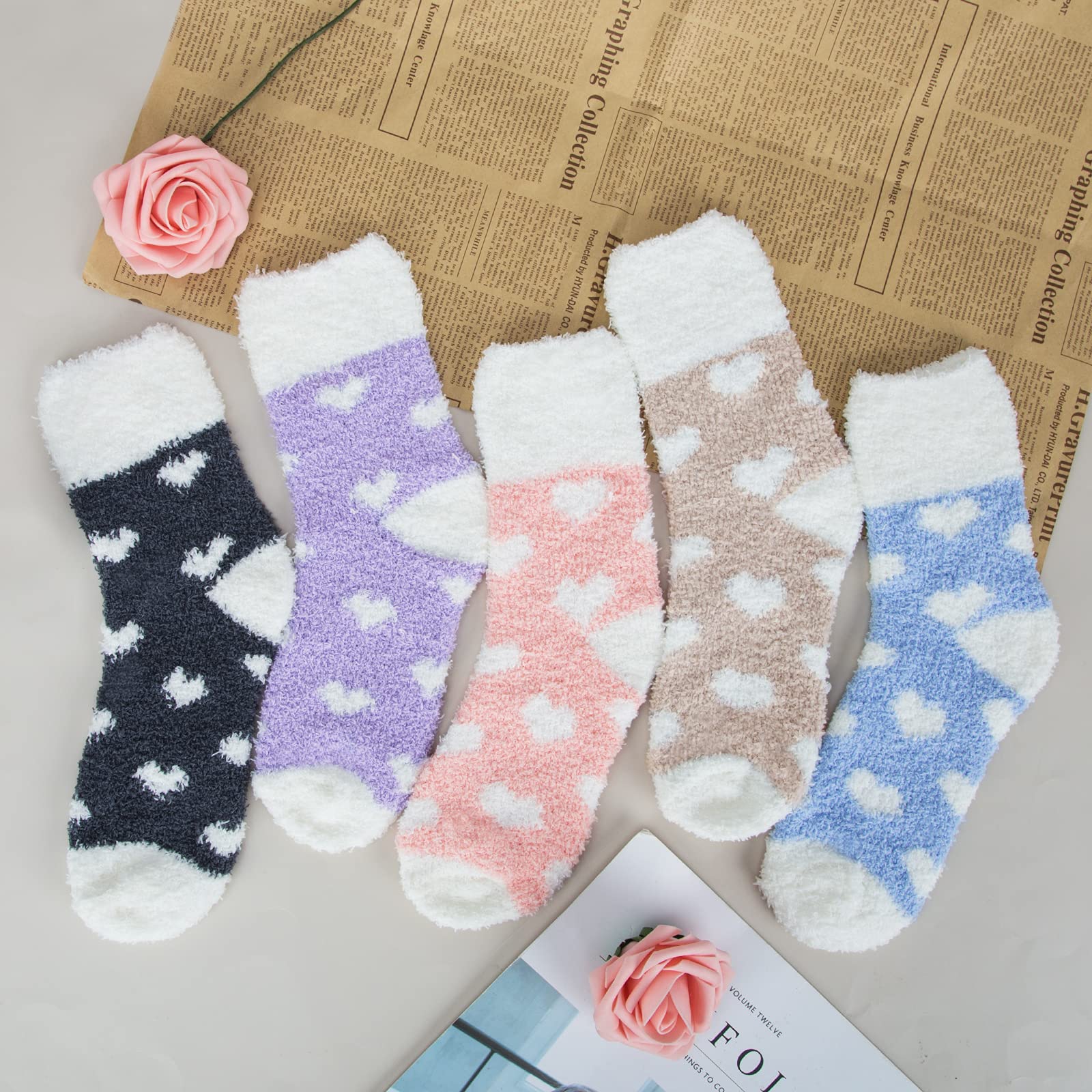 - Super Soft: Our women fuzzy socks are made of polyester and spandex, which are super soft, stretchy and warm; Soft cloud-like fluffy material will keep your feet and toes warm in cold weather; Cute fluffy socks can accompany you for several winters
