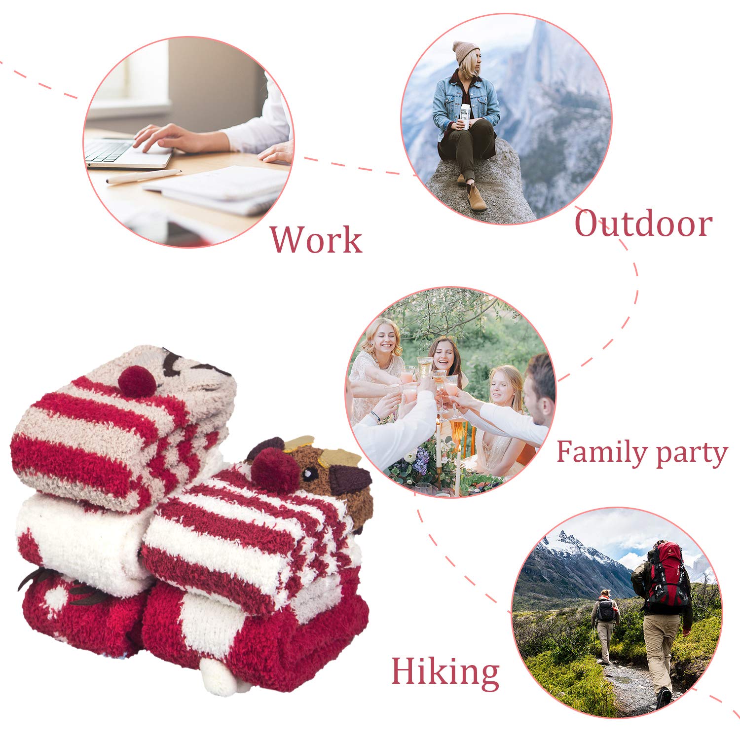 - Holiday Presents: Women winter socks with stylish, various color and designs; Characteristics of soft and light textures; Come with 5 pairs cozy socks; It is presents for women, men, mom, grandma, teen girls in Christmas